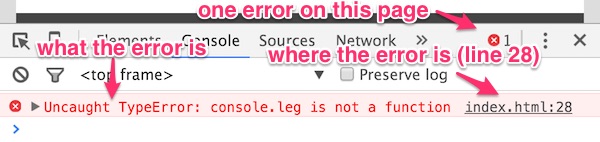If there’s an error, the console tells you: