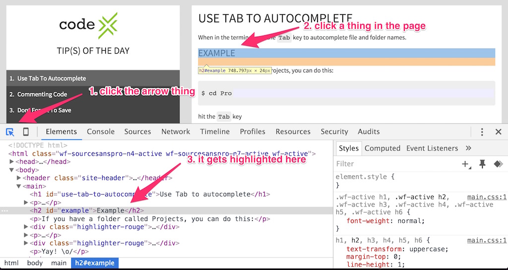 To easily select an element for inspection, use the arrow thing. Like this: